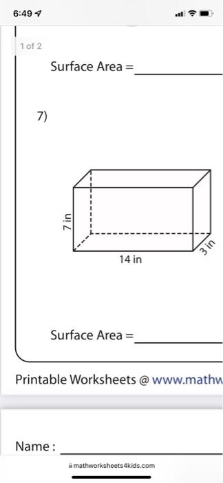Printable math worksheets surface area